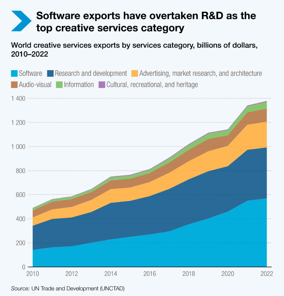 例えば、2022年にはデザインを始めとする、映画制作、広告などのクリエイティブサービスの輸出が1.4兆ドルに達し、2017年から29%も成長しました。